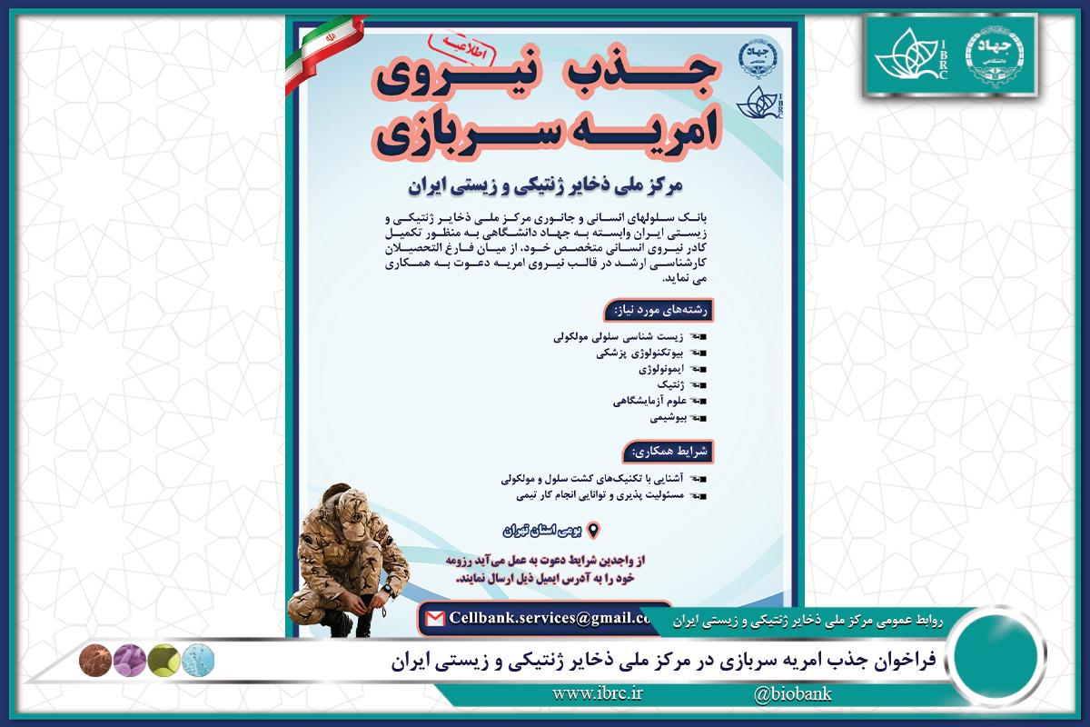 فراخوان جذب امریه سربازی در مرکز ملی ذخایر ژنتیکی و زیستی ایران